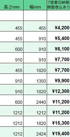 | ラミネート有り | ¥3,000 | ¥3,500 | ¥4,000 | ¥4,500 | ¥5,000 |